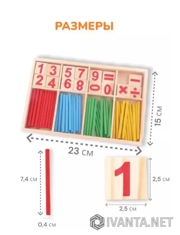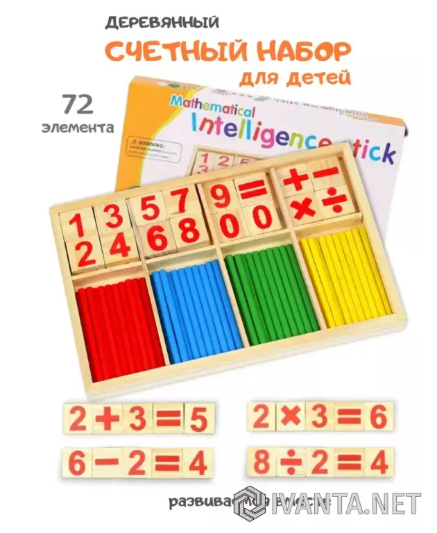 Счетный материал - это многофункциональное пособие для развития деток всех возрастов. Математический набор является незаменимым помощником для малышей, которые только начинают свой путь в мире цифр и счета. С помощью тренажера по математике Вы поможете ребенку в игровой форме усвоить состав чисел, научиться считать в прямом и обратном порядке, а также сравнивать "больше - меньше". С развивающей игрой Ваше чадо освоит связи между числом и количеством предметов и обучится решать примеры и задачи. В комплект входят 72 деревянных разноцветных элемента, которые упакованы в удобный пенал. Яркий дизайн развивашки привлечет внимание, познакомит с основными цветами и сделает обучение более увлекательным. Важная особенность обучающего набора заключается в том, что дитя сможет не только видеть, но и трогать составляющие, так как тактильное восприятие способствует лучшему усвоению информации с самых малых лет. Счетные палочки помогают развивать у дошкольника логику, воображение, а также способность к нестандартному мышлению. Наша дидактическая игра АГГУ ВАРИ станет идеальным спутником для занятий дома и детского садика, а также будет полезным подарком для девочки или мальчика на День Рождения, Пасху, 1 июня - день защиты детей, выпускной и любой другой праздник !