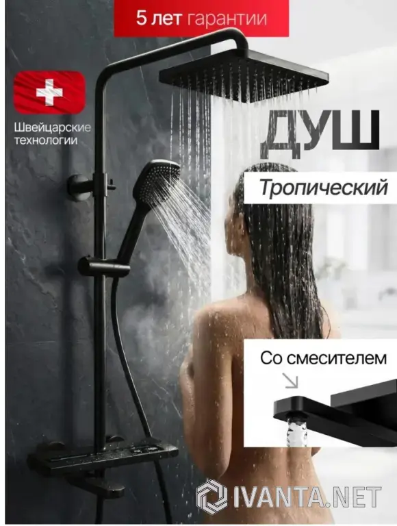 Душевая система с тропическим душем – стильное решение для комфортного ежедневного использования. Функциональный и современный комплект безупречно дополнит интерьер ванной комнаты.