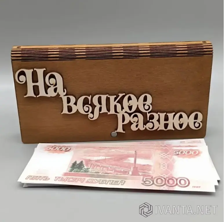 Деревянная купюрница станет оригинальным подарком на любой праздник. Купюрница выполнена из дерева на высокоточном оборудовании. Деревянная купюрница для денег это отличная альтернатива бумажному конверту и в дальнейшем может стать прекрасным предметом декора для дома. Подарочная коробка для денег уместит в себя купюру любого номинала. Шкатулка для денег плотно закрывается с помощью магнита и будет надёжно сохранять ваш семейный бюджет. Гравировка дизайна коробочки выполнена с учётом всех деталей рисунка.