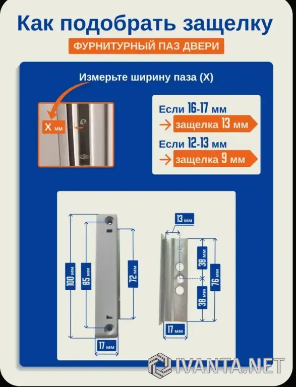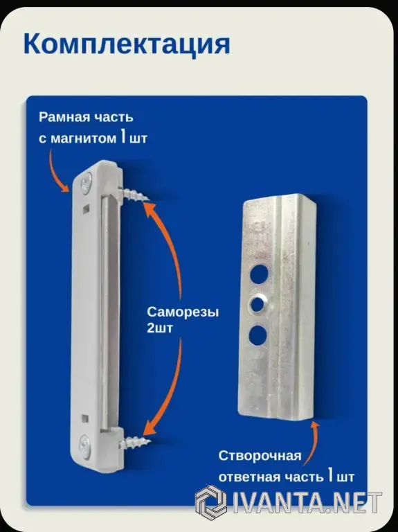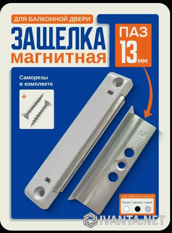Магнитная защелка для балконной двери. Защелка для балконных дверей с фурнитурным пазом 13 мм – это элемент оконной фурнитуры, предназначенный для фиксации балконной двери в прикрытом положении без закрывания ручкой или запирания ключом. Защелка магнитная предотвращает самопроизвольное открывание двери от сквозняка. Балконная магнитная защёлка позволяет закрывать балконную дверь без усилий и щелчков и обеспечивает хорошую фиксацию двери. В отличие от механических, магнитную защелку не нужно смазывать, менять пружины. При перекосах полотна функциональность магнитного механизма не пострадает, в отличие от механического. Магнитная балконная защелка состоит из магнита в пластиковом корпусе и металлической пластины L-образной формы,также двух саморезов. Корпус магнитной защелки крепиться на дверную коробку, а ответная часть устанавливается на внутреннюю сторону двери. ВНИМАНИЕ: перед покупкой убедитесь, что у вас 13-я система ПВХ-профиля.