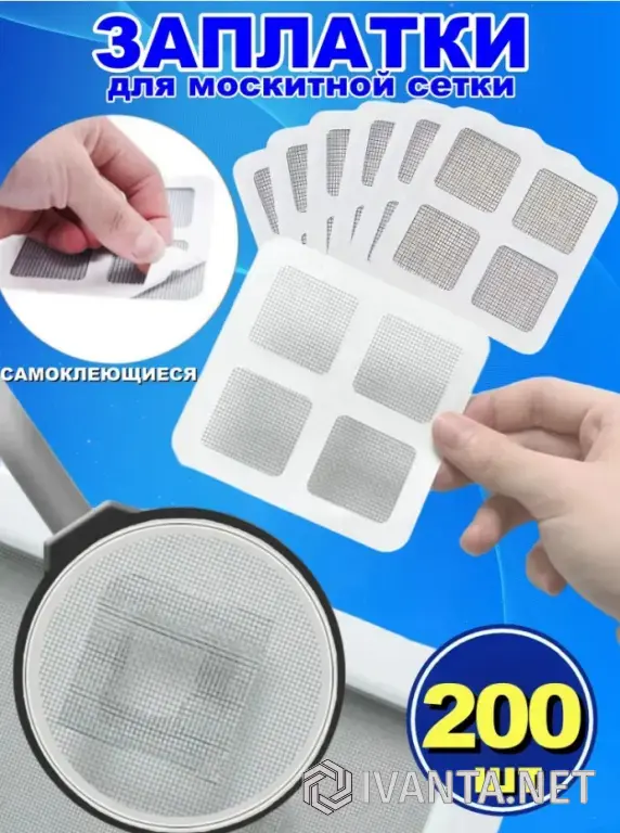 Заплатки для москитной сетки 200 листов 10Х10 см; москитная скотч сетка, комплект заплаток.