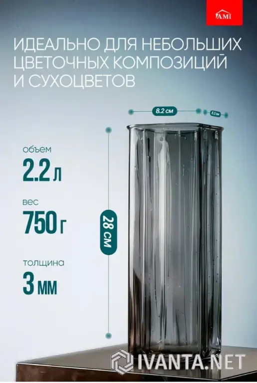 Универсальность этого изделия позволяет ему органично вписаться в различные стили интерьера - от строгого минимализма до современного лофт. Ваза проста в уходе.