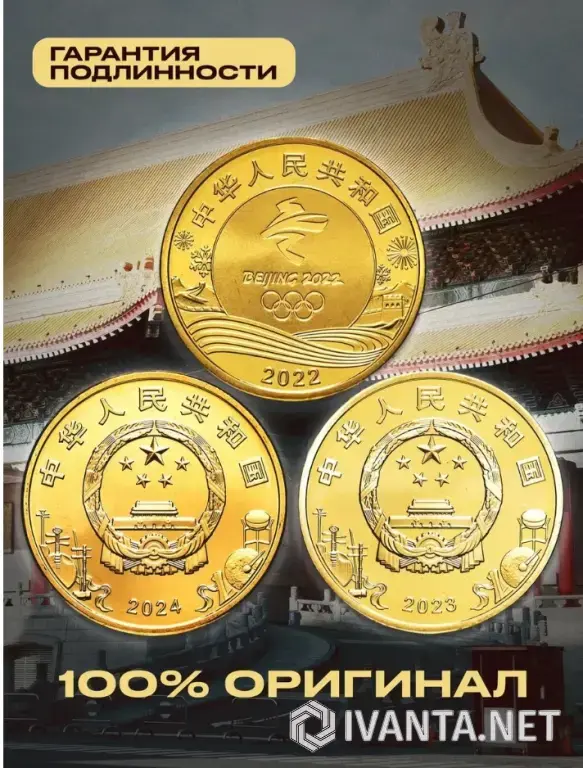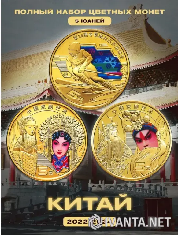 ПОДЛИННЫЙ КОЛЛЕКЦИОННЫЙ Полный набор цветных монет Китая 5 юаней 2022-2024 года.