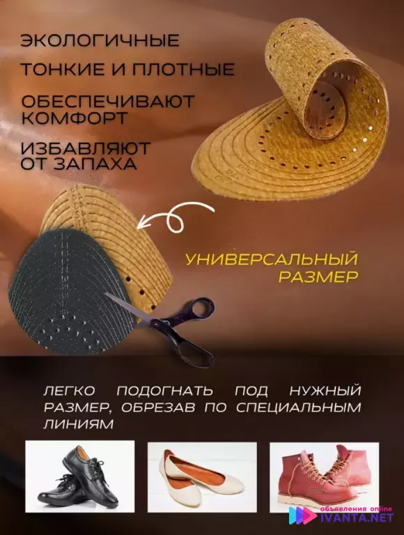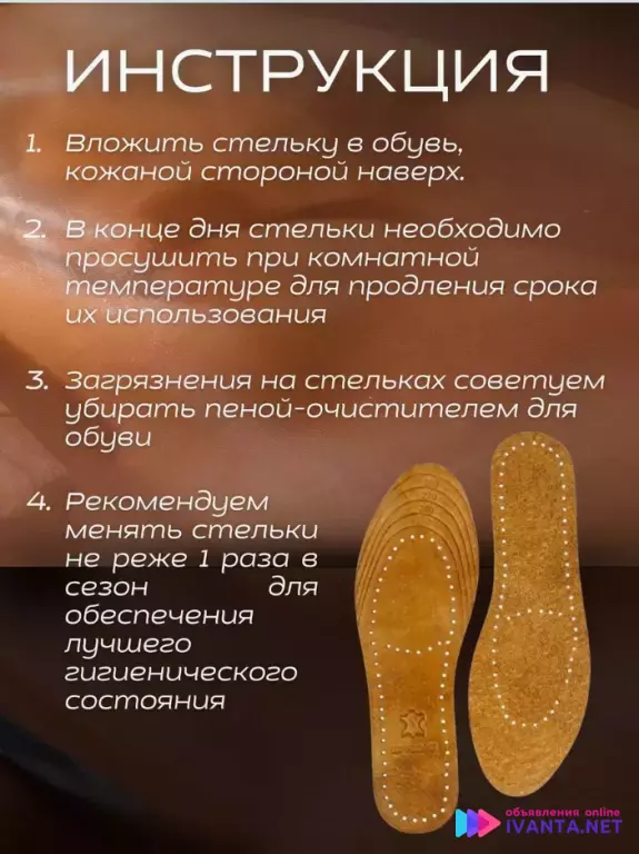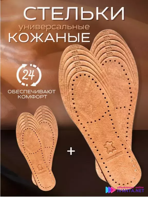 Стельки из натуральной кожи - этот материал долговечный и износостойкий. Стельки избавляют от не приятных запахов и позволяют стопе дышать, не накапливают внутри обуви влагу, ноги не потеют даже в жаркую погоду и сохраняют воздухообмен. Универсальные, подходит как для мужчин так и для женщин. Кожа 100%, гипоаллергенные. Обеспечивают ногам комфорт в течении всего дня. Применяеются для всех видов закрытой обуви. Из-за особенности натуральной кожи, тональность цвета может немного менятся, также в упаковке может накопится запах кожи. Перед использованием рекомендовано проветрить, допустимая разница толщины +-1 мм, просьба учесть это, тк это натуральная кожа, без использований любых других материалов. Стельки из натуральной кожи / Стельки из кожи перфорированные / Стельки мужские / Стельки женские / Стельки для обуви женские / Стельки для обуви мужские