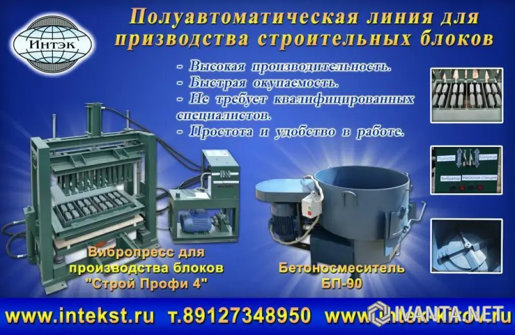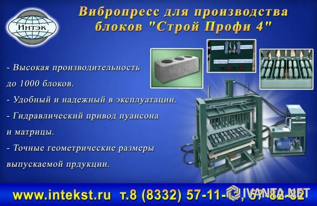 Легкость эксплуатации и простота в обслуживании позволяют выпускать бетонные изделия высокого качества из наполнителя любого типа (в качестве наполнителя обычно используются отсев, керамзит, опилки, шлак).