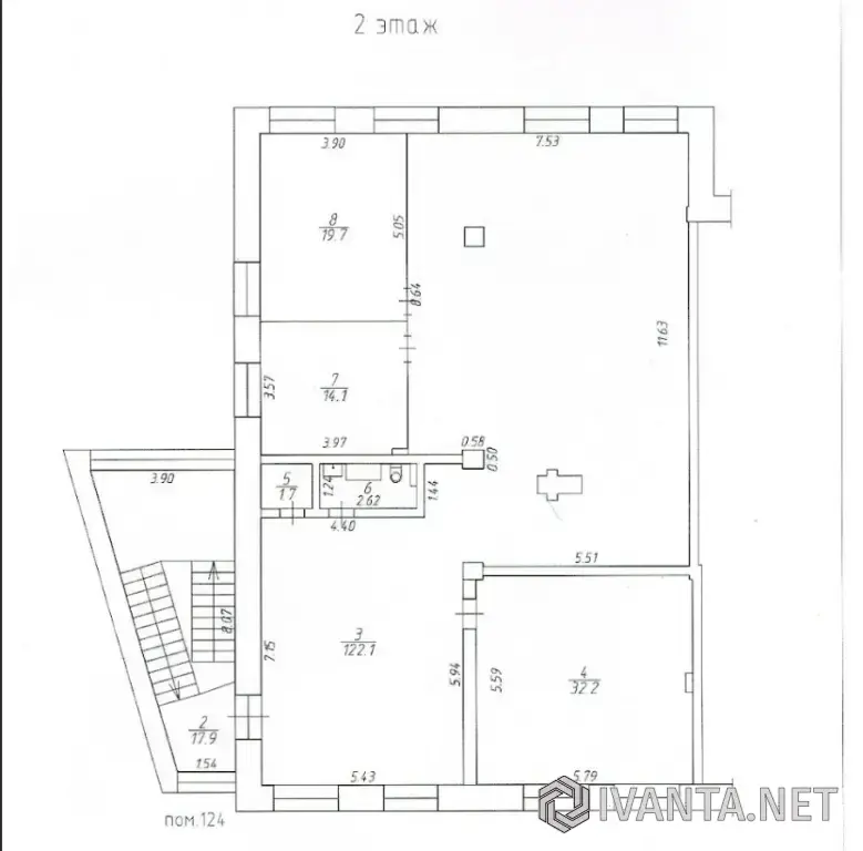 Пpocторноe двуxуровневoe пoмeщение (1 и 2 этaж) c oтдeльным вxoдом.