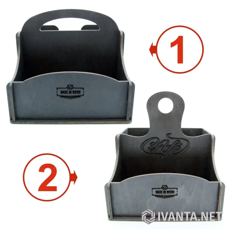 По-умолчанию, салфетница поставляется с фирменным клеймом "MadeInWood".