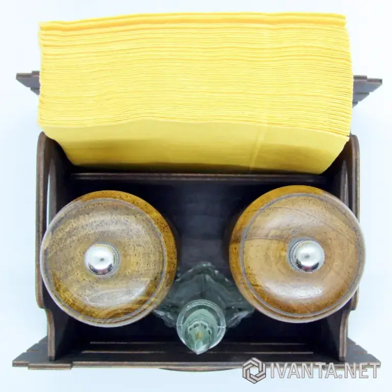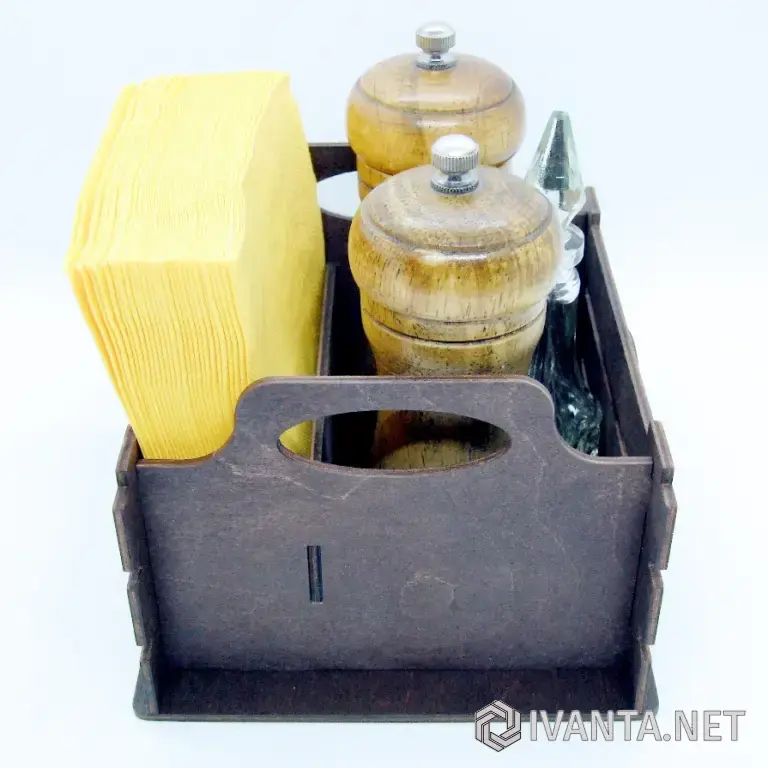 Функциональная и элегантная компактная настольная подставка-диспенсер для салфеток с отсеком для специй.