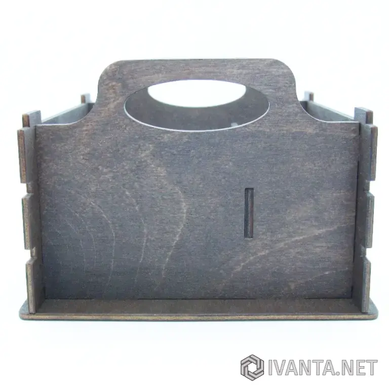 Экологически чистое изделие. Салфетница выполнена из натурального дерева (высококачественной березовой ламели), обработана и собрана вручную и покрыта декоративным экологически безопасным тонирующим составом цвета "Шоколад", отлично подчеркивающим красоту рисунка древесины.