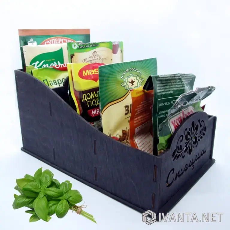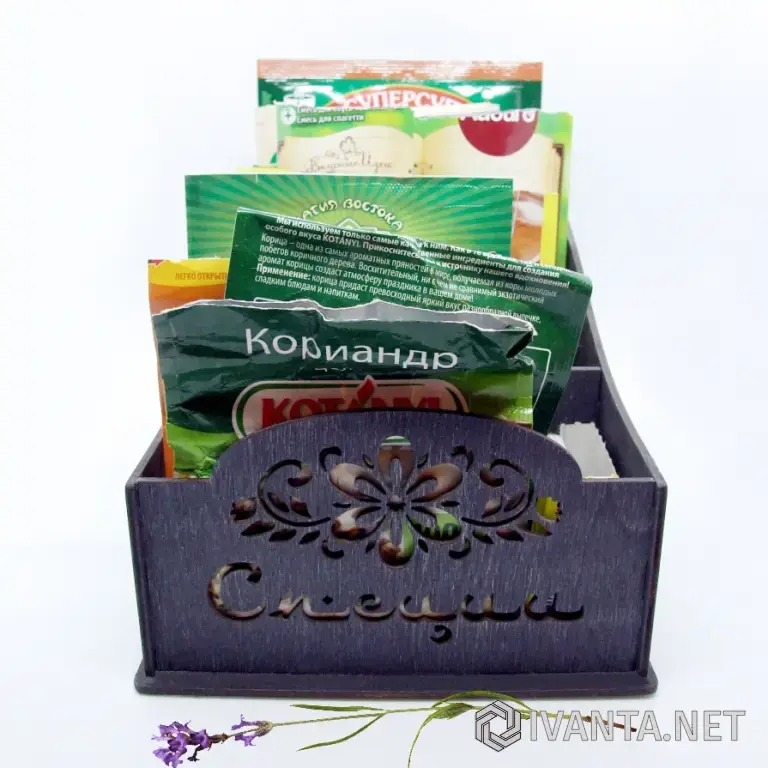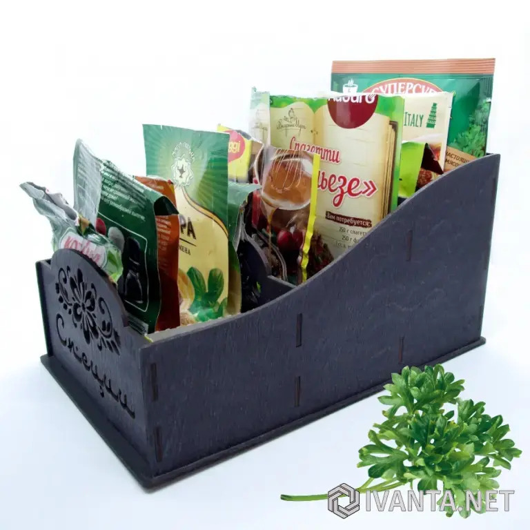 Удобный настольный органайзер для хранения всевозможных пакетиков со специями.