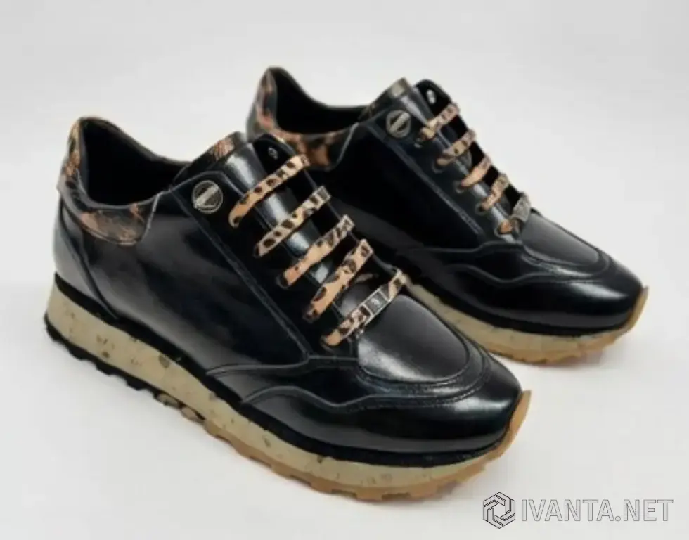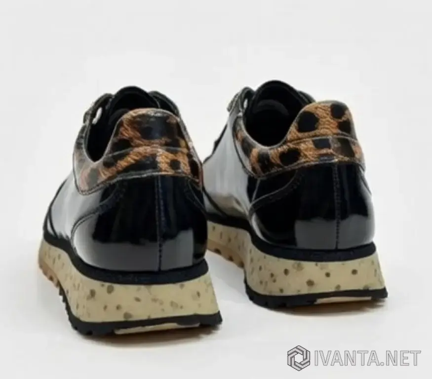 Материал верха: чёрная глянцевая экокожа / лак + леопардовый принт на заднике, вставках и шнурках (очень качественный, не облезает, не трескается)
