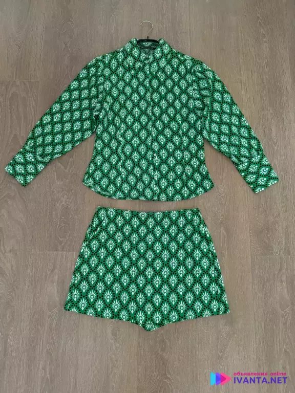 Яркий и оригинальный костюм Zara в идеальном состоянии, рубашка и юбка-шорты, размер XS.