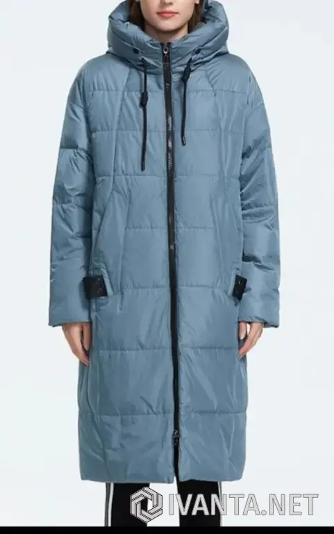 Новый, очень теплый. Цвет темный, морской волны, как на первых двух фото. Длина 110см,ширина под руками 64см.