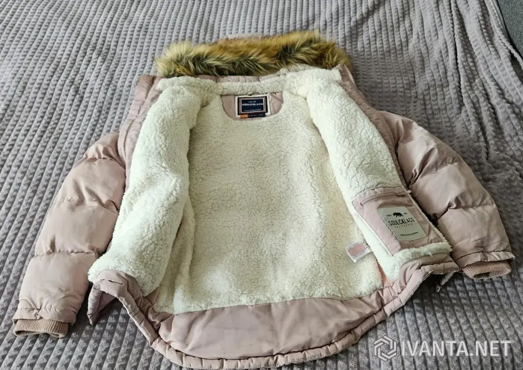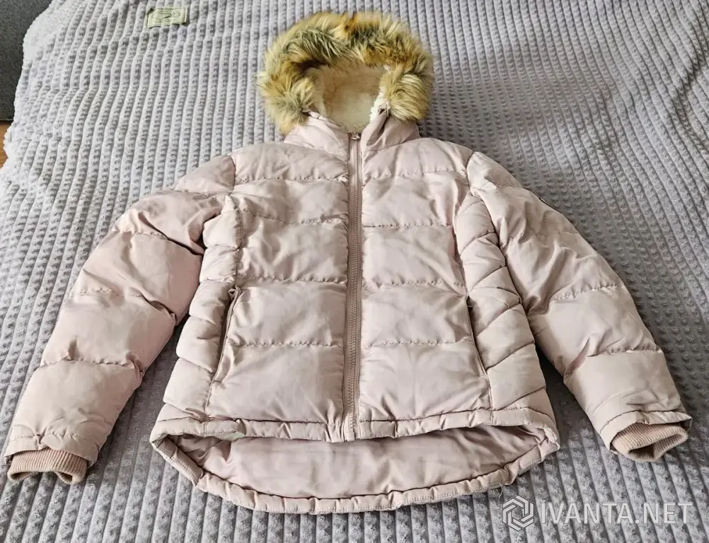Куртка в хорошем состоянии, очень тёплая, пудрового цвета. Размер М.
