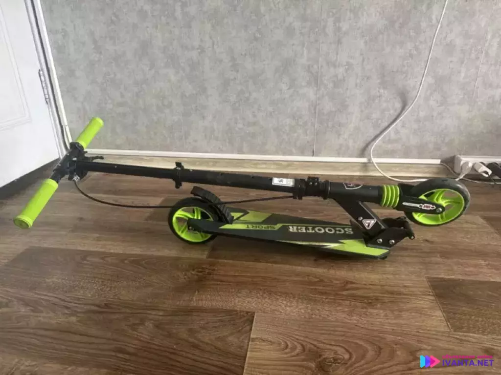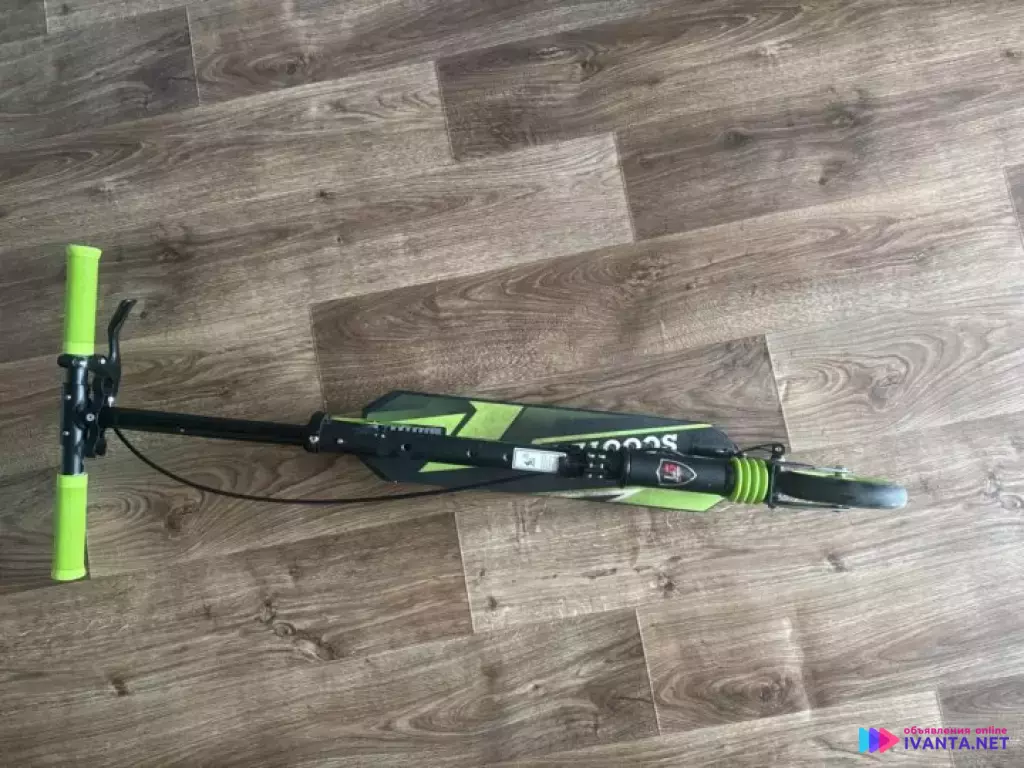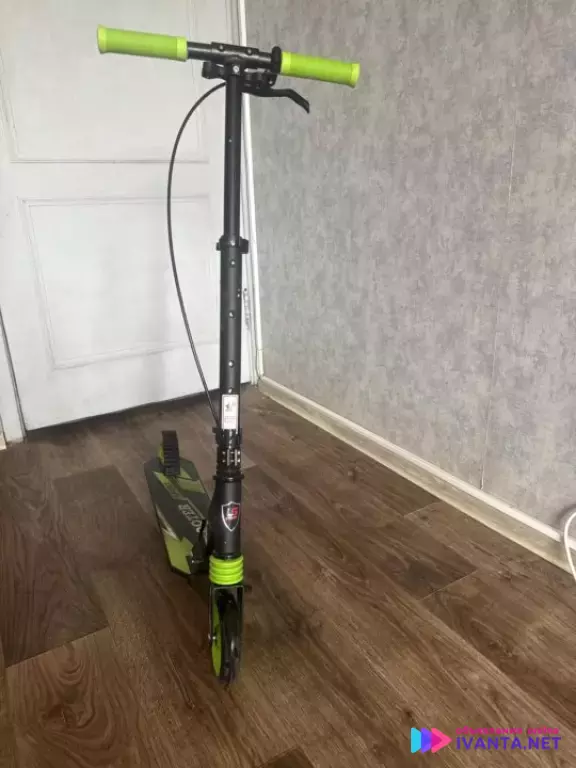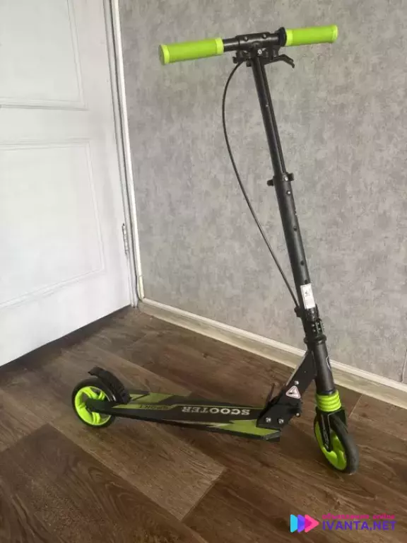 Самокат двухколесный для детей и подростков, на рост до 180 см, вес выдерживает 100 кг, использовали 1 сезон имеет ножной и ручной тормоз, размер колес 145 мм, колеса полиуританновые, металлический корпус, Подножка для устойчивости. Не тяжелый чуть больше 3 кг складывается удобно брать с собой. В хорошем состоянии.