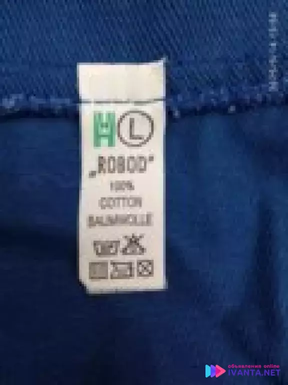 Комбинезон мужской строительный. Размер L. Новый. Цвет синий. ХБ. На молнии. Карманов-5. Длина (вся) - 160см, длина от низа до талии - 105см, длина от плеча до талии - 55см, плечи - 50см, талия- 92см, бедра - 108см. Торг.