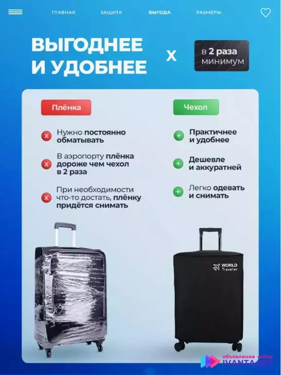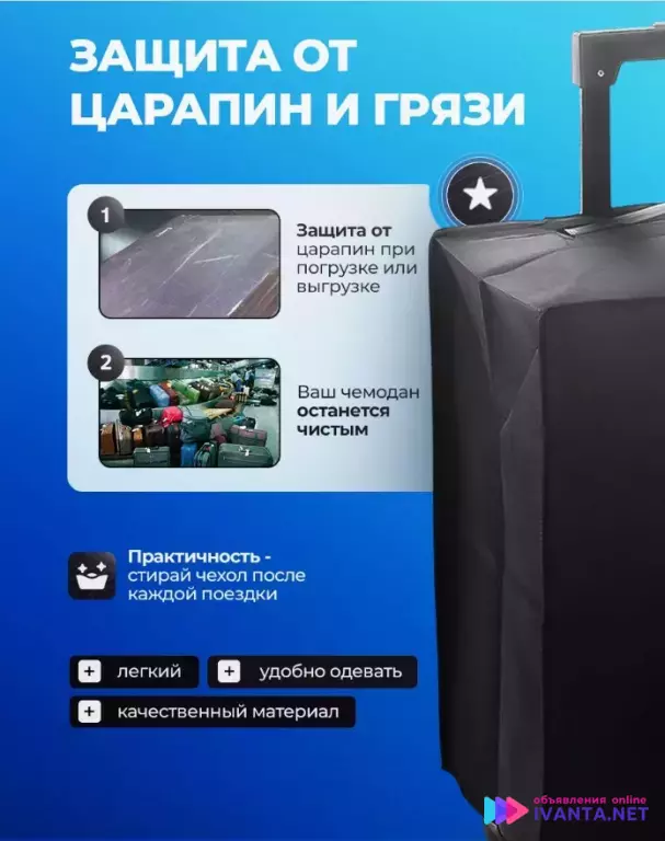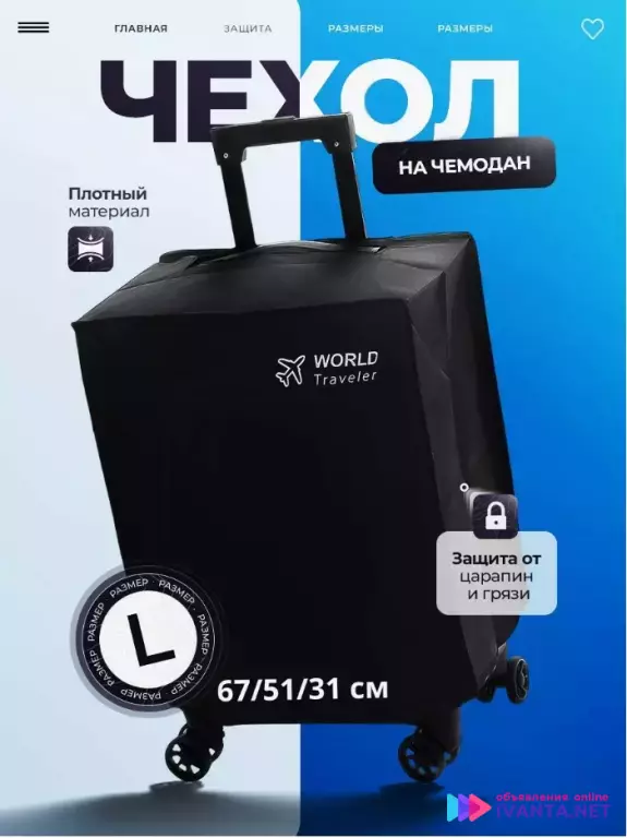 Чехол для чемодана - это универсальный аксессуар, который обеспечивает защиту вашего багажа во время путешествий. Изготовлен из прочной плотной ткани, надежно защищает чемодан от внешних повреждений, царапин и пыли. Он оснащен водонепроницаемой пленкой, которая предотвращает проникновение влаги внутрь чемодана, защищая ваши вещи от влажности. Черный чехол имеет универсальное отверстие для ручек и липучку в зоне колес, что позволяет легко передвигать чемодан даже в защитном чехле. Благодаря эстетичному дизайну и черному цвету, он выглядит стильно и привлекательно. Чехол подходит для маленьких,средних и больших размеров чемоданов. Этот чехол - отличный выбор для защиты вашего багажа во время путешествий.