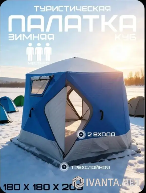 палатка для зимней куб,3 местная автомат трёхслойная с москитной/180*180*180 cm VLAKEN ZY-003A/ для рыбалки и кемпинга,туризма и отдыха