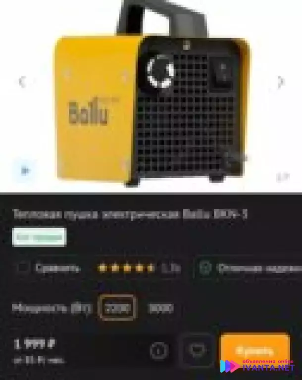 Тепловентилятор-обогреватель Ballu(Баллу) BKN-3 2200В, предназначен для обогрева и просушки помещений