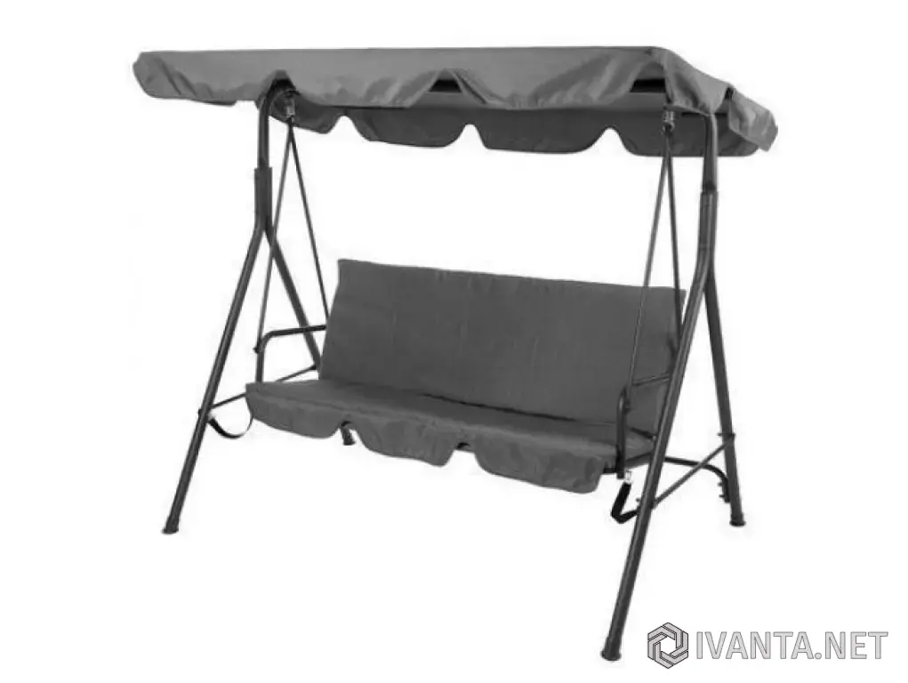 Характеристика: Габаритные размеры изделия (длина х ширина х высота), мм: 1600 х 1000 х 1500 Габаритные размеры сиденья, спинки и тента (длина х ширина), мм: размеры сиденья: 1145х430 размеры спинки: 1145х498 размер тканевого тента: 1570х1135 Максимальная нагрузка, кг: 160 Каркас: труба стальная O32х1,2мм; дуга опорная - O32х1,4мм полимерное покрытие; Мягкий элемент: ткань 45% п/э – 55% хлопок, плотность 108-111г/м2, наполнитель мягкого элемента – «аэрофом» 50мм, Основание сидения ткань полипропиленовая. Тент: ткань с водоотталкивающей отделкой 100% п/э плотность 120г/м2 Размеры упаковки: 500х165х1320 Вес изделия: нетто, кг – 22 брутто, кг – 23.Страна производитель Беларусь.