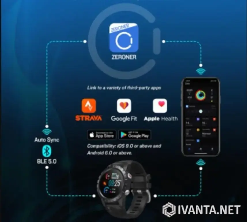 -Zeblaze Stratos со встроенным GPS, компасом в режиме тренировки и пульсом на запястье, GPS, тестами производительности и отслеживанием восстановления.